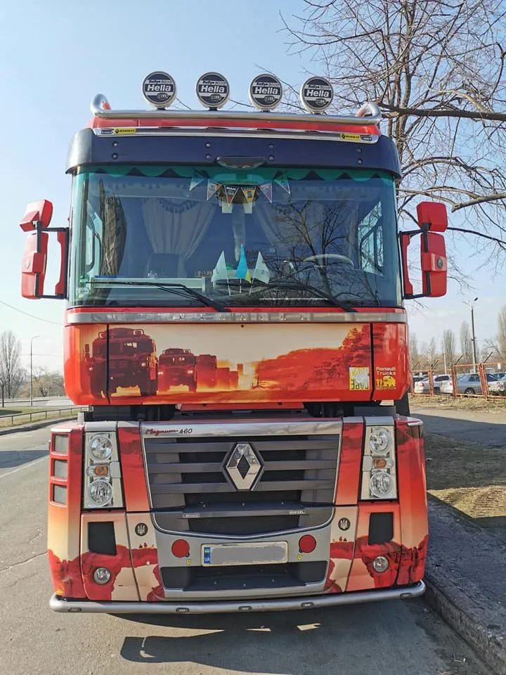 Магистральный тягач Renault Magnum не выпускается уже несколько лет, однако по-прежнему пользуется большой популярностью у отечественных дальнобойщиков. Главная фишка машины – роскошная кабина, с совершенно ровным полом. Так вот, на днях на столичных дорогах был замечен один такой тягач Renault Magnum просто с уникальной раскраской. Это настоящая авторская работа.