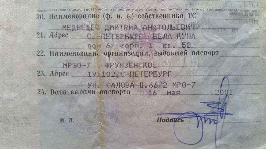 Машина доволі пошарпана. Судячи з техпаспорта, на Медведєва автівка була зареєстрована ще в 2001 році. Потім у неї з'явився новий власник, який кілька років тому подарував її Пітерському музею раритетних автомобілів.