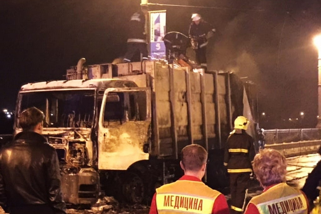 Субботний вечер в столице был омрачен довольно масштабным дорожно-транспортным происшествием, из-за которого пришлось перекрывать движение на одном из самых оживленных мостов – Патона. А виной всему стал неисправный грузовик-мусоровоз. Сообщение о возгорании поступило на пульт пожарных в 21:47, сообщает «Сегодня» . Пожар возник в моторном отсеке мусоровоза и перебросился на кузов, в котором был мусор. Тушение пожара усложнялось тем, что огонь мог переброситься на другие машины, поэтому движение решили полностью перекрыть. Из-за высокой температуры оплавилась контактная сеть на мосту. В 22:11 пожар был локализован. Пострадавших нет. Взрывов внутри мусоровоза не было: взрывались только емкости, которые киевляне обычно выбрасывают в мусор – баллончики от краски, бутылки.