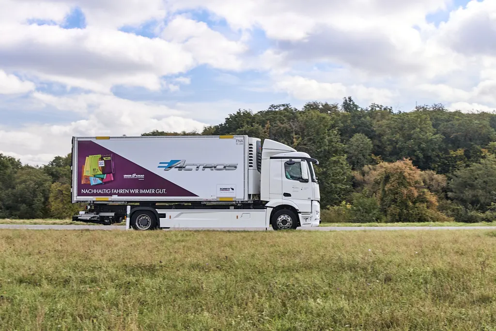 18-тонный eActros оснащен рефрижераторным сменным кузовом-фургоном W.KO COOL от известного производителя Schmitz Cargobull. Что интересно, на нем установлена холодильная установка, которая, как и сам грузовик, также работает исключительно от электродвигателя и не имеет вредных выбросов.