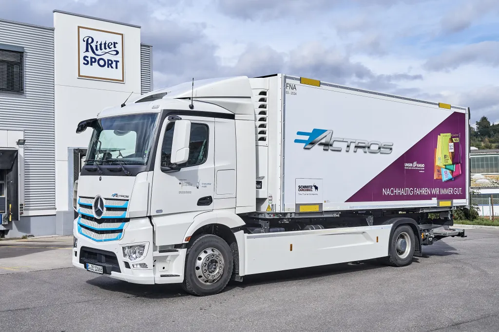 Семейная компания Ritter Sport, которая специализируется на квадратных шоколадных батончиках и базируется в Вальденбухе недалеко от Штутгарта, в настоящее время тестирует электрический грузовик eActros.