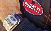 На создание Bugatti Super Sport мастеров компании вдохновил рекордный 1200-сильный автомобиль семейства Veyron с очень похожим названием. Одной из фишек этой модели часов стал циферблат, который с помощью специального высокоточного механизма, передающего вращение под углом в 90 градусов, поставлен вертикально к задней стенке часов. Это позволяет не только совершать меньше движений рукой, чтобы бросить взгляд на изящные стрелки и элементы механизма за сапфировыми стеклами, но и дает волю дизайнерам в оформлении корпуса. Последний большей частью выполнен из карбона и решен в стиле самого Bugatti Veyron с многочисленными дугами и овалами. А контрастные оранжевые элементы точно попадают в палитру соответствующей отделки на Bugatti Veyron Super Sport.