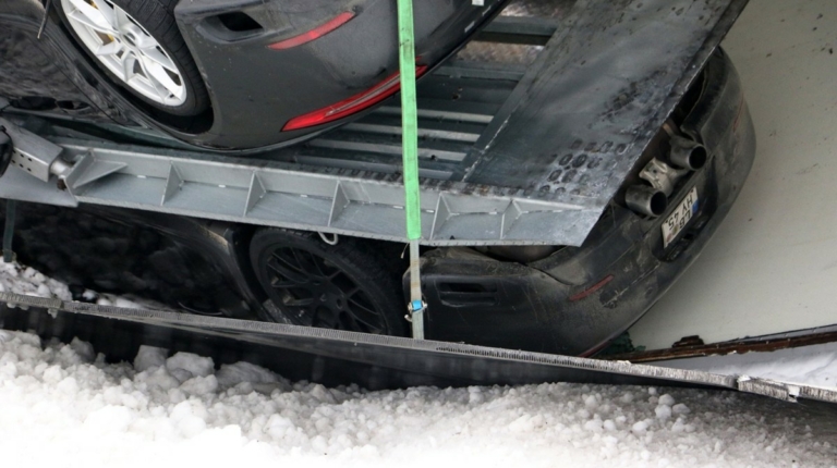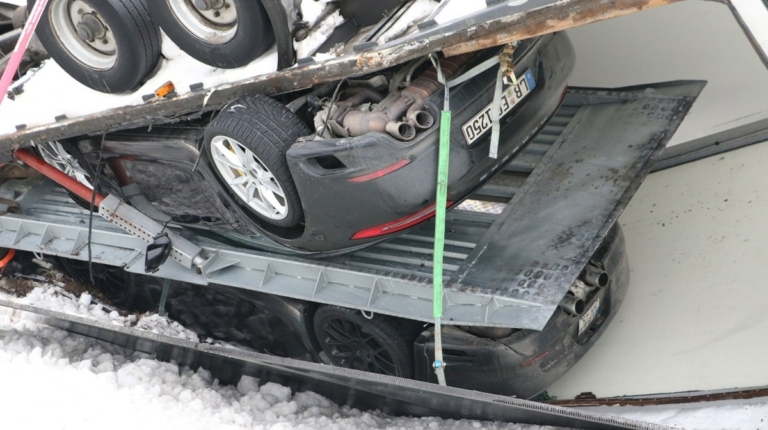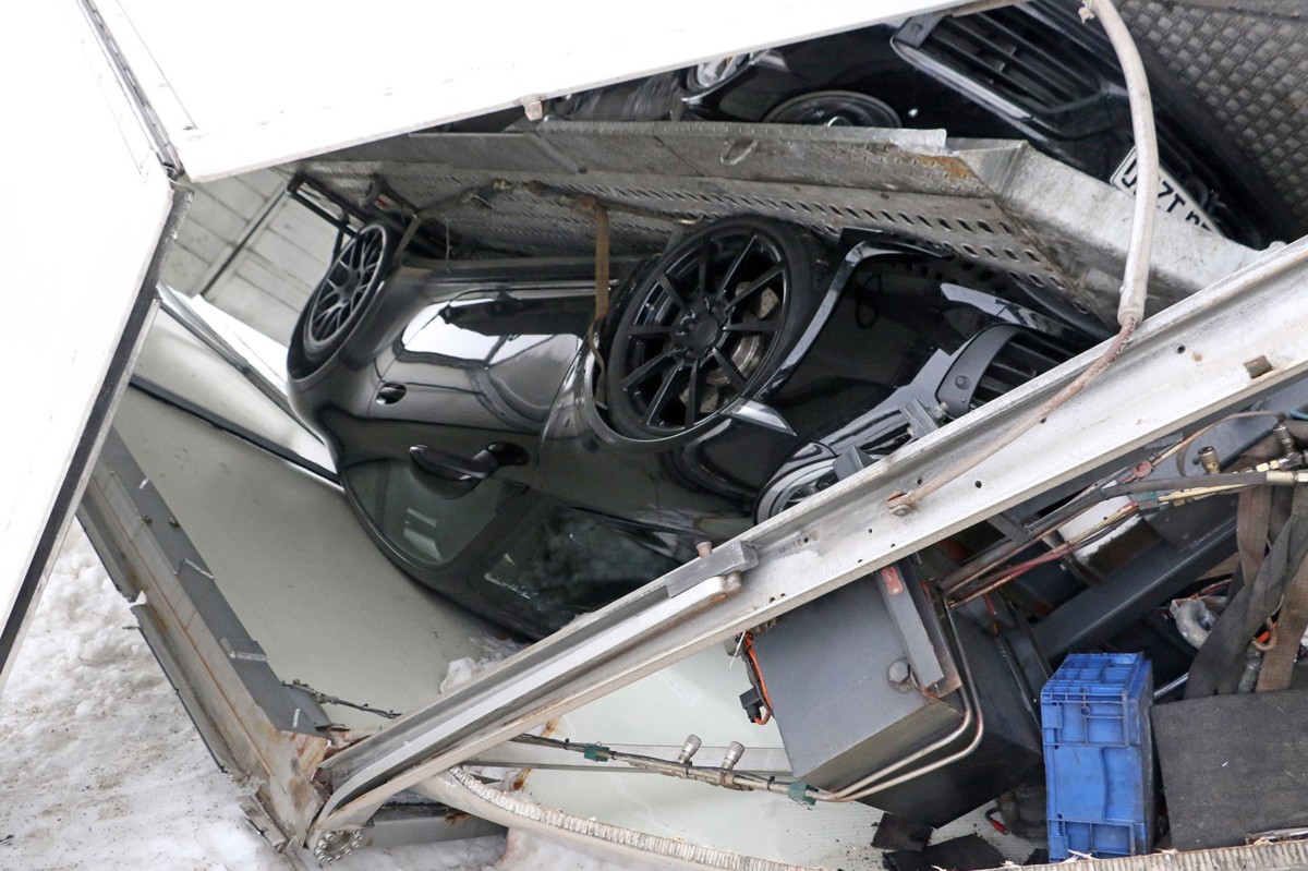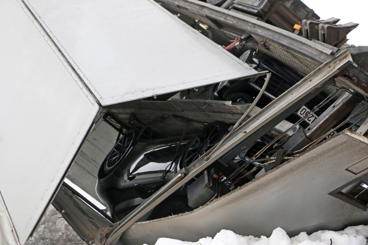 На одній зі шведських доріг в аварію потрапив автовоз, що перевозив прототипи Porsche, призначені для зимових тестів.