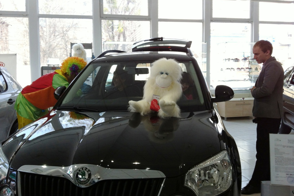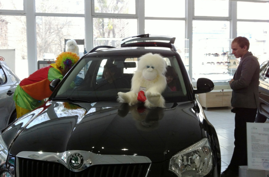 7-8 апреля 2012 года все посетители автосалона Skoda на Печерске имели возможность пройти тест-драйв автомобиля Yeti, оценить все достоинства первого чешского кроссовера и зарядиться положительными Skoda – эмоциями на всю следующую неделю. Захватывающим были не только эмоции от управления автомобилем мечты, как Skoda Yeti был назван одной из поклонниц марки, но и от атмосферы, которая царила на протяжении всего праздника. А подымали настроение веселые клоуны, вкусный фуршет, зажигательная музыка и улыбки на лицах всех присутствующих гостей.