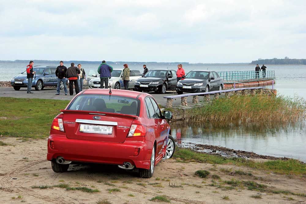 Лесные дорожки между озерами порой напоминают раллийные допы. Чувствуете, куда клоню? Subaru и ралли – два неделимых понятия. Полный привод помог без проблем проехать по раскисшему картофельному полю и песчаному берегу. Главное – не увлечься. Ведь дорожные просветы и свесы у основной массы машин легковые. Первым в опасной зоне оказался аэродинамический обвес седана Impreza в версии «спорт». Он помогает Impreza Sport прижиматься к асфальту на скоростях, но первым идет на «контакт» с грязью.