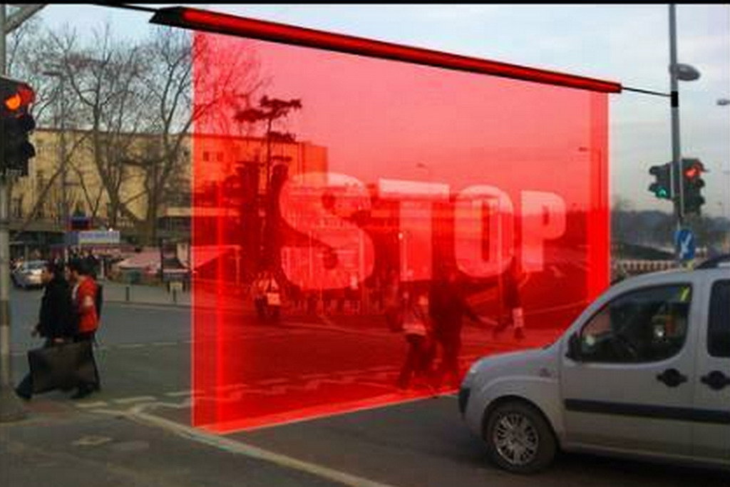 Недавно европейские инженеры решили создать и лазерный светофор. Он проецирует перед автомобилем целую голографическую картинку с идущими пешеходами или надписью «стоп», естественно красного цвета. В итоге водитель моментально реагирует на свет. Кроме того, психологически тяжело проехать на красный, т. к. картинка частично ограничивает видимость. Кстати, именно последний фактор вызывает опасение: нарушающий в этом случае водитель может создать куда больше опасности для участников движения.