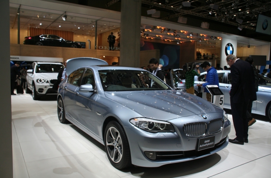 Не отставая от японских брендов и создавая современные автомобили, немецкая компания BMW привезла в Токио новый полноразмерный гибрид на базе седана BMW 5-Series. Это уже не концептуальный, а серийный автомобиль. Он оснащен 6-цилиндровым рядным бензиновым силовым агрегатом объемом 3 литра (306 л.с.) и электромотором мощностью 54 л.с.