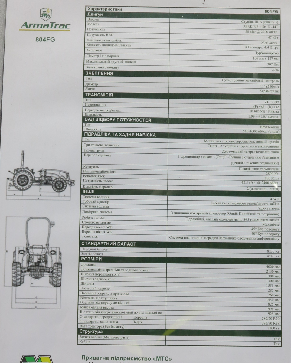В Украине ArmaTrac представляет пять основных моделей. Это 110-й – т. е. мощностью 110 л.с. Особенность его в том, что он имеет полуавтоматическую коробку передач. Затем идет более дешевая, бюджетная модель – 105-я. Здесь механическая коробка передач итальянской марки Carraro. Двигатель – оригинальный, английской марки Perkins.