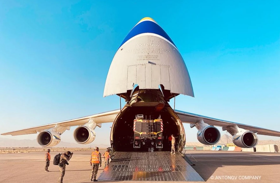 Українські гіганти Ан-124 "Руслан" перевозять різні великовагові вантажі по всьому світу. Днями компанія "Авіалінії Антонов" за допомогою Ан-124-100М-150 здійснила транспортування трьох пожежних автомобілів Rosenbaurer Panther з Близького Сходу в одну з країн Центральної Азії, повідомляє antonov.com
