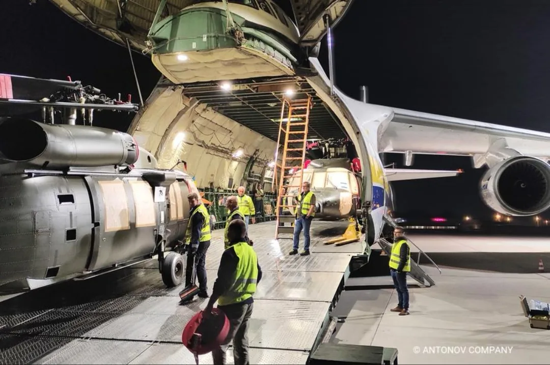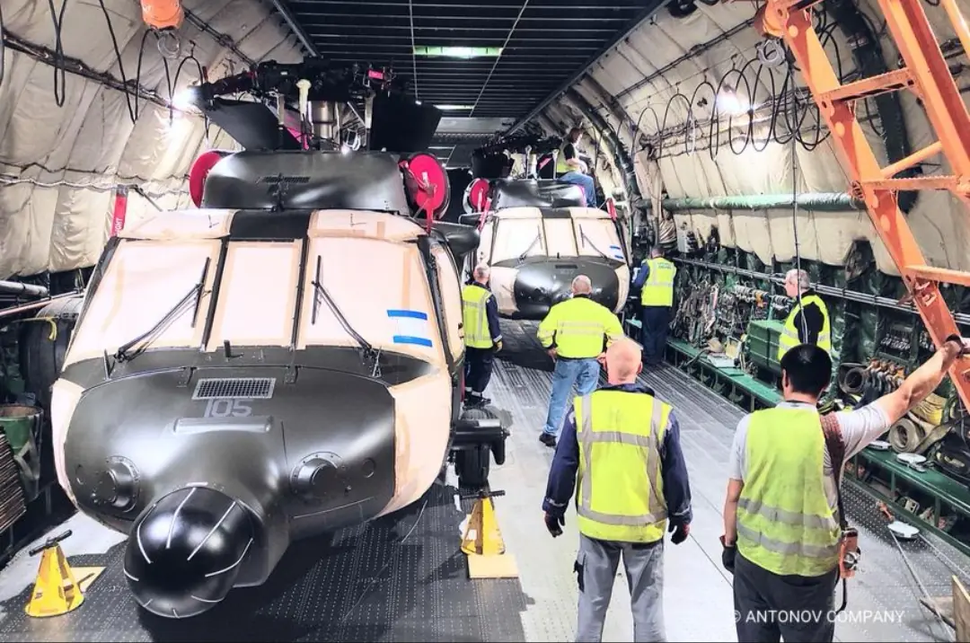 До речі, в середині червня "Авіалінії Антонов" за допомогою Ан-124 "Руслан" виконали ще одне цікаве перевезення. Із Польщі на Філіппіни було доставлено п'ять вертольотів S-70i Blach Hawk, кожен з яких важить 5,6 т і має довжину 19,76 м.