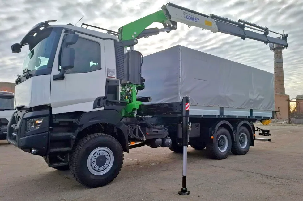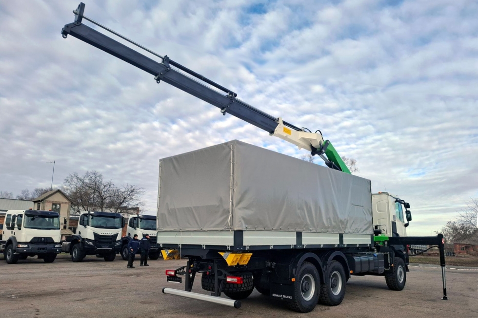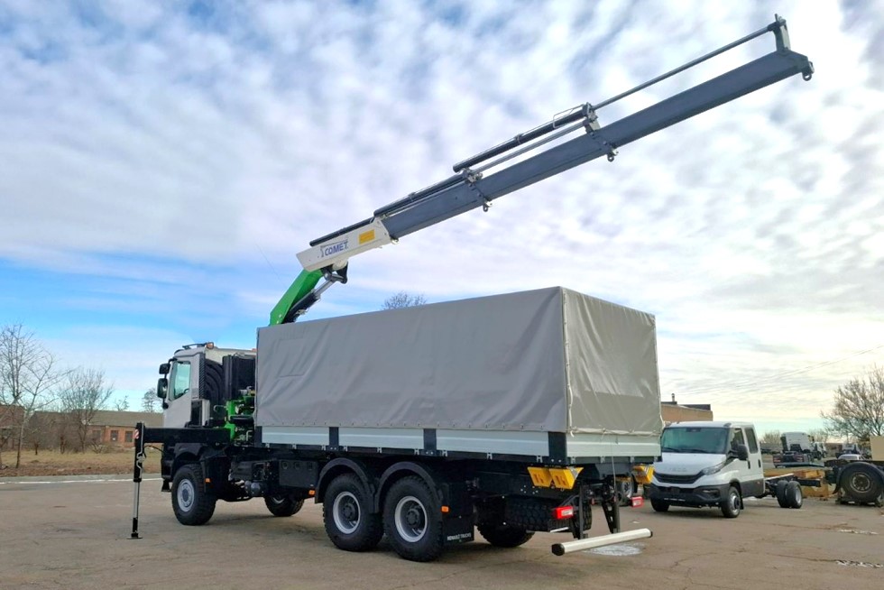 Днями Завод спецтехніки “Техкомплект” передав для компанії “УкрТрансГаз” партію позашляхових вантажівок TK-RT-KM-3500. Це повнопривідні тривісні шасі Renault Trucks серії К, які оснастили бортовою тентованою платформою власного виробництва та краном-маніпулятором відомої італійської марки Comet.