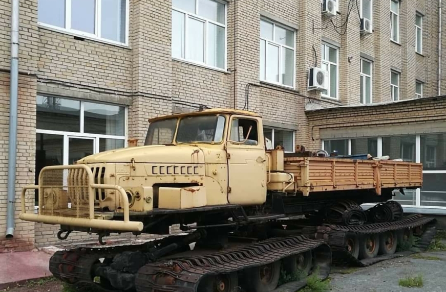 Только посмотрите на этого монстра с четырьмя гусеницами и кабиной от грузовика «Урал-4320». Сегодня эта необычная машина просто гниет во дворе одного челябинского предприятия, однако ее еще можно спасти. Такой гигант – длиной 9,9 м шириной 3,0 м и высотой 3,7 м – станет изюминкой любого автомобильного музея.