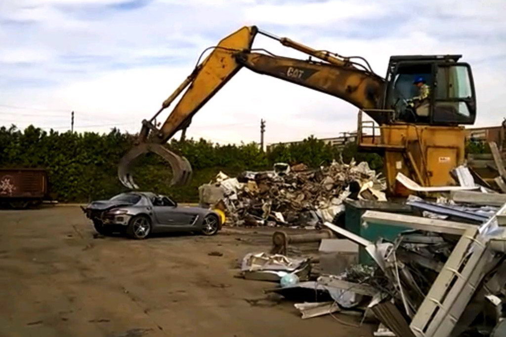 Многие автомобили кончают свой жизненный путь под прессом. Однако, когда видишь, когда буквально коверкают еще ничего с виду суперкар, становится не по себе. Недавно в сеть попал ролик, на котором показано как на одной американской автосвалке громадный экскаватор буквально крошит редкий автомобиль Mercedes-Benz SLS AMG. Эта модель была выпущена как дань легендарному Mercedes-Benz 300 SL и имела характерные для этой машины поднимающиеся двери по принципу «крыло чайки».
