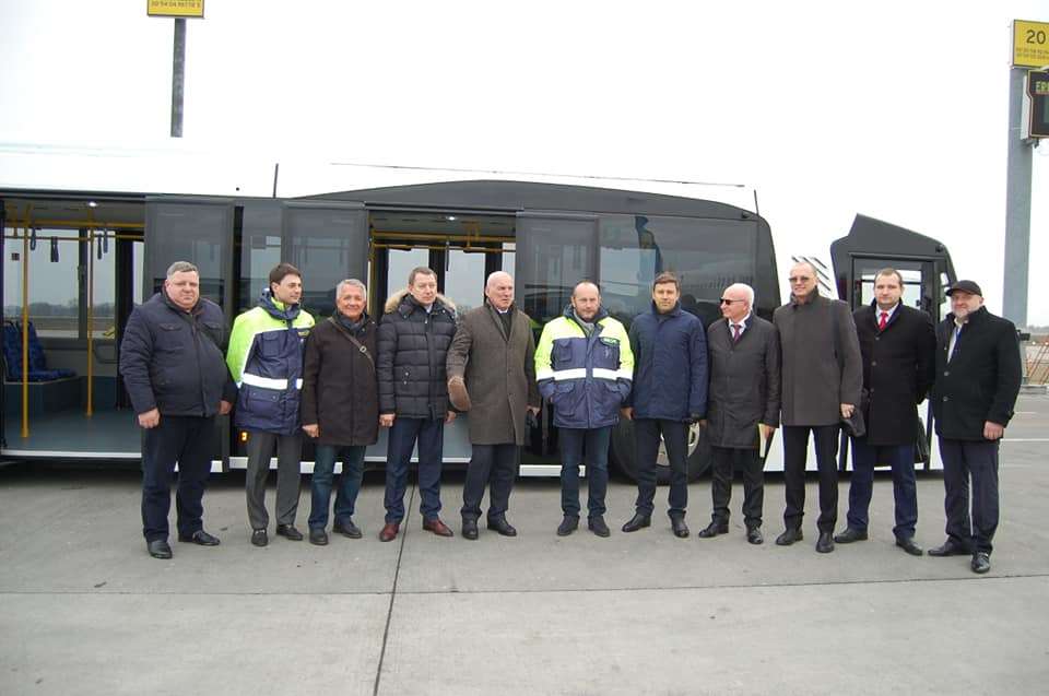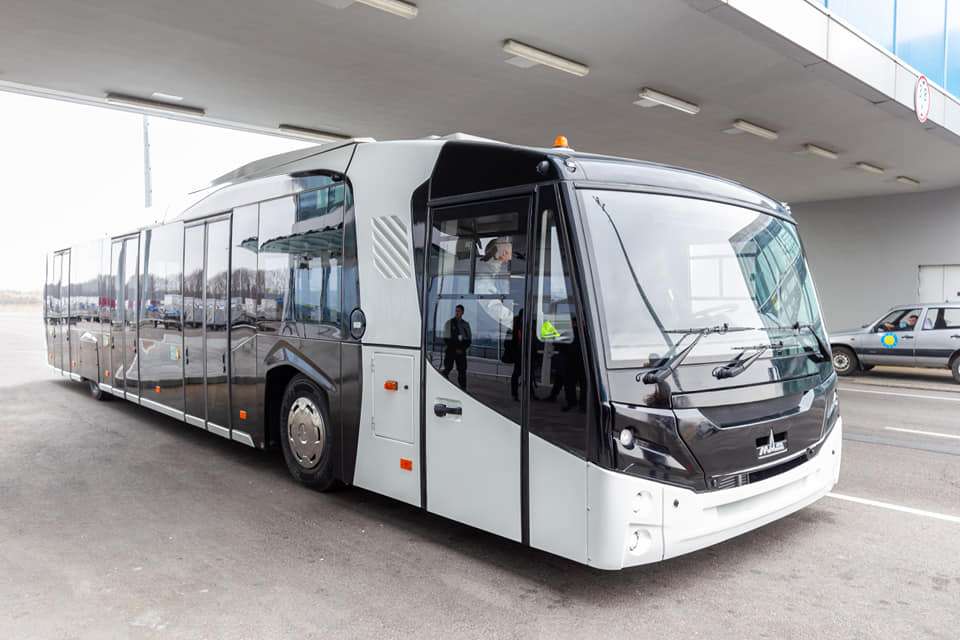 Новинка представлена в аеропорту Борисполя за участю генерального директора ВАТ МАЗ Валерія Іванковича та голови Міжнародного аеропорту “Бориспіль” Павла Рябікіна.