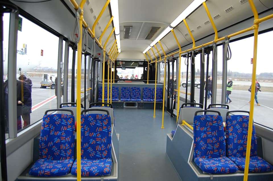 Сидінь для пасажирів небагато – лише 14. За бажання на заводі можуть поставити додаткові ряди, хоча зараз аеропорти віддають перевагу стоячим місцям. У салоні багато світла за рахунок великих вікон, а ввечері вмикається світлодіодне підсвічування. “Погода” також під контролем: потужний кондиціонер охолодить салон в спеку і зігріє в мороз. Для суворої погоди є опалювачі.