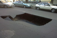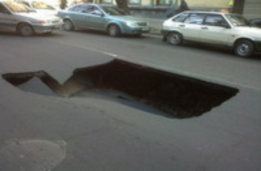 Как сообщили в пресс-службе «Облавтодора», яма глубиной почти шесть метров образовалась на проезжей части из-за проседания почвы.