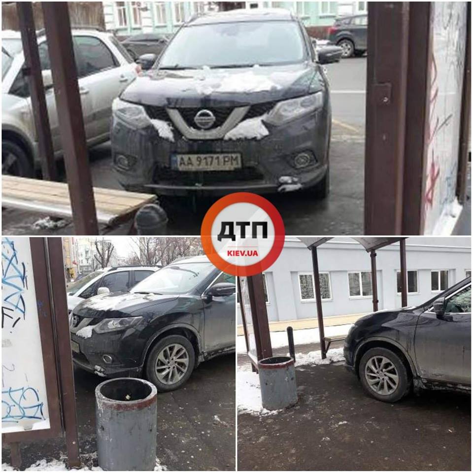 В Киеве засняли очередного героя парковки. На этот раз им стал водитель Nissan X-Trail, оставивший свой автомобиль на остановке общественного транспорта.