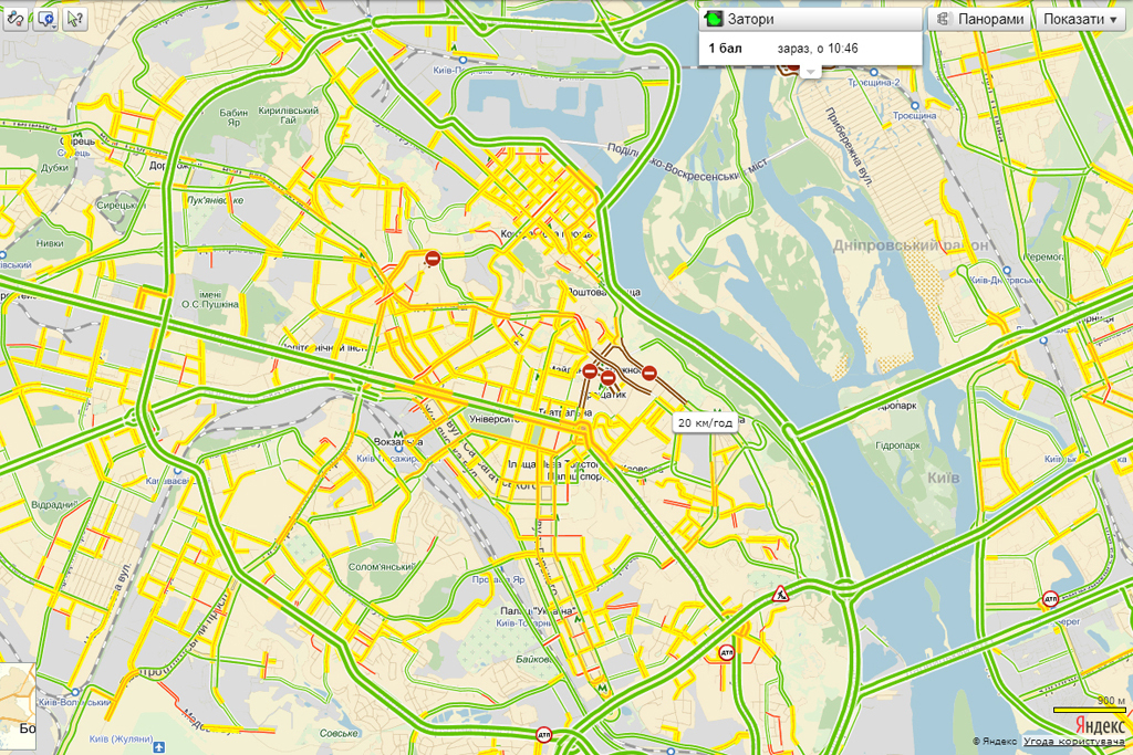 После вчерашнего всплеска эмоций сегодня, 21 февраля, на дорогах крайне не много автомобилей. За исключением Крещатика, где по понятным причинам проезда нет, все основне магистрали зеленые. О такой свободе передвижения в средине буднего дня в Киеве обычно приходится только мечтать. Навигатор с учетом пробок предлагает проезд через весь город максимум за час, независимо это маршрут с Одесской площади на Бровары, или с вышгородского направления на Столичное шоссе, либо любом другом.