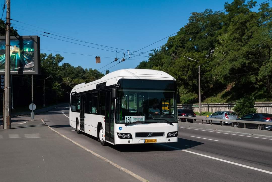 Низькопідлогові автобуси з гібридною силовою установкою Volvo 7700 Hybrid працюють маршрутним таксі під номером 150, розвозячи пасажирів від вулиці Милославської, що на Троєщині, до Індустріального шляхопроводу.