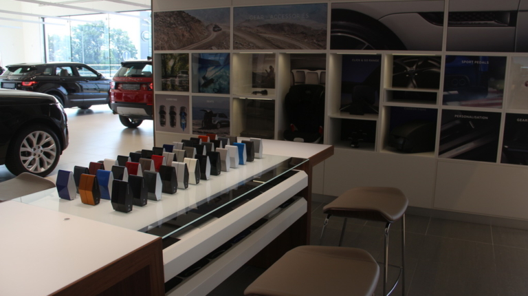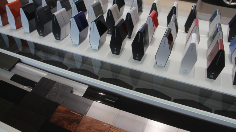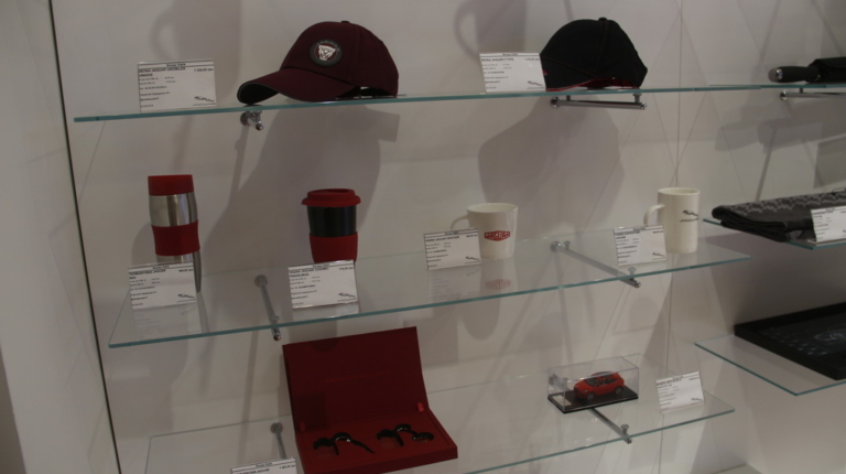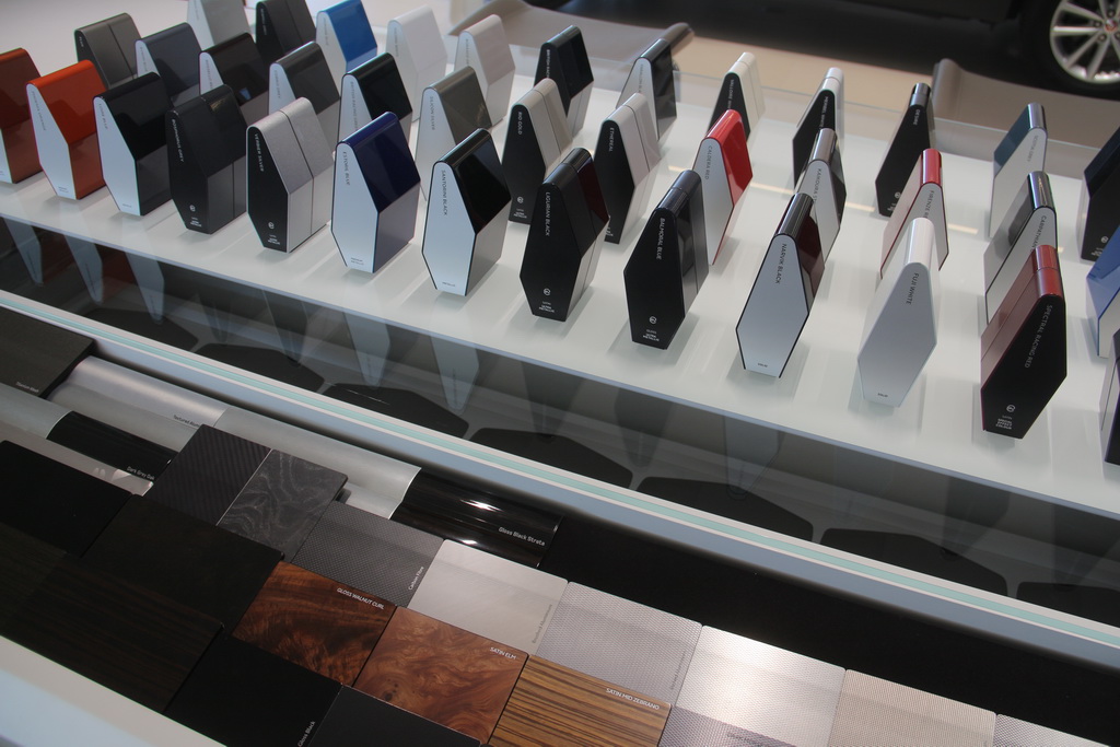 Здесь также располагается студия по персонализации автомобилей с образцами отделки салона и цветовых вариантов окраски кузова, коллекция аксессуаров и брендированной продукции.