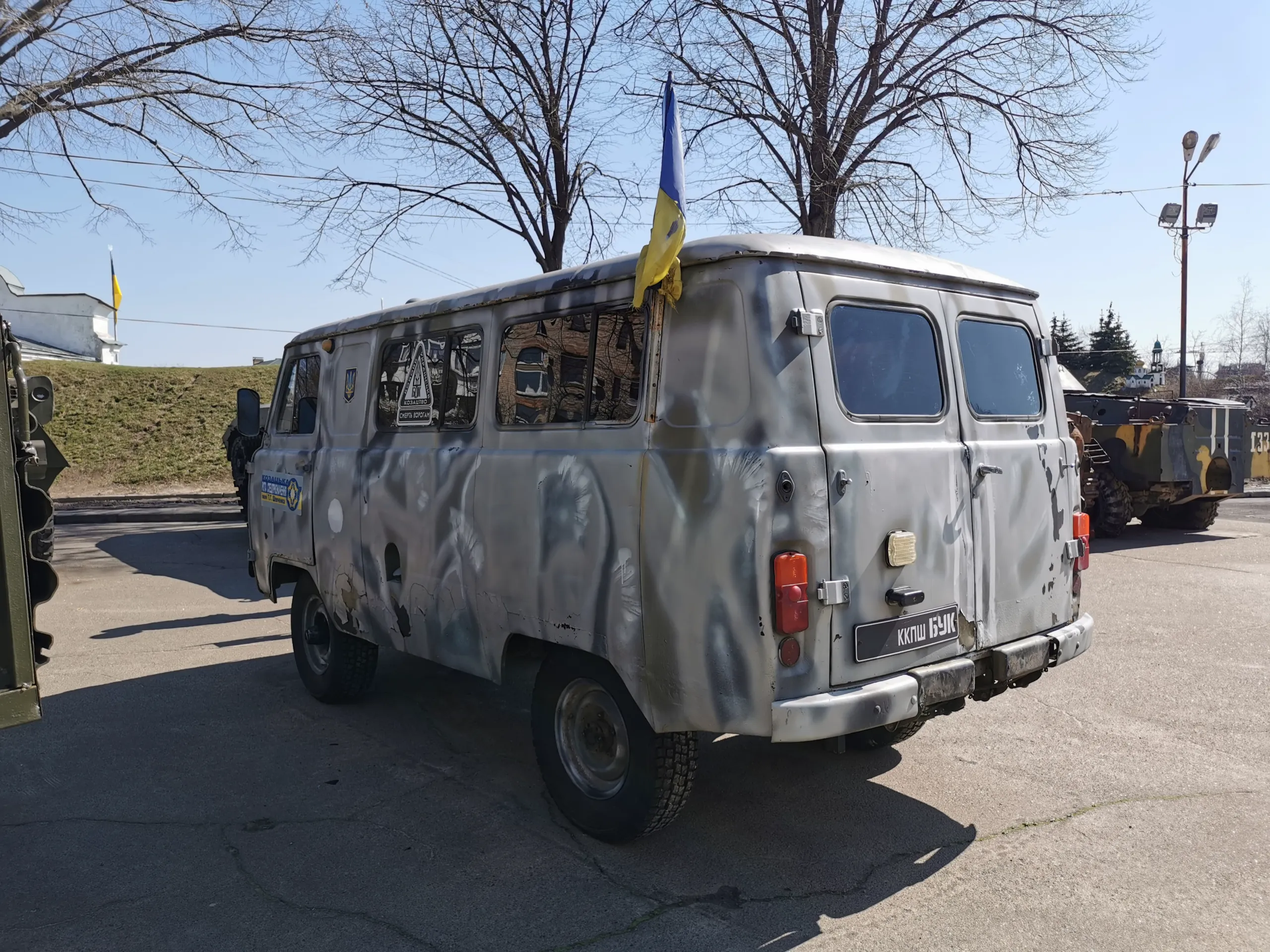 На территории Национального музея истории Украины во Второй мировой войне не так давно появилась экспозиция автомобилей, помогавшим украинским воинам в зоне АТО (ныне ООС). В конце прошлого года сюда привезли бронированный УАЗ «Бронежаба», о которой мы уже подробно писали. А вот теперь выставка пополнилась еще двумя новинками.