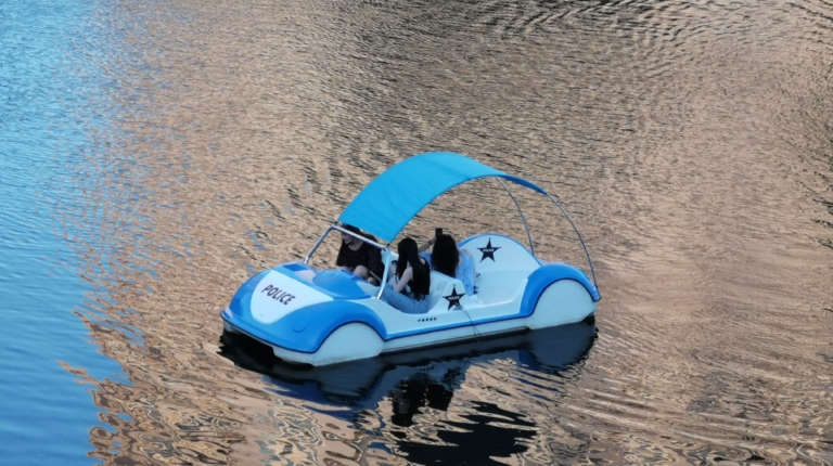 Плавающий «народный автомобиль» довольно практичный: у него два места спереди, на которых установлены педали, а также еще два места сзади, где отдыхающие сидят спиной к движению. Очень удобно, что катамараны имеют тканевую крышу, отлично защищающую от солнца и от кратковременного дождика. Интересно, что она на полукруглом каркасе – в духе характерного дизайна Beetle.