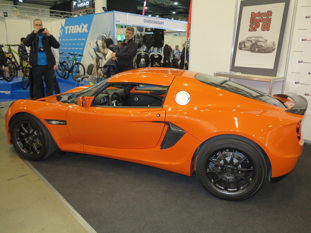 На выставке в Киеве представлена машина Detroit Electric с электромотором 204 л. с. и батареями емкостью 37 кВт.ч От 0 до 100 км/ч. Машина разгоняется за 5 с и развивает максимальную скорость 250 км/ч. Запас хода составляет 225 км. Зарядка происходит либо от сети 220В – за 9 – 11 часов, либо от 380В – за 4-5 часов. Стоит Detroit Electric SP:01 немало – от 185 тыс. евро.
