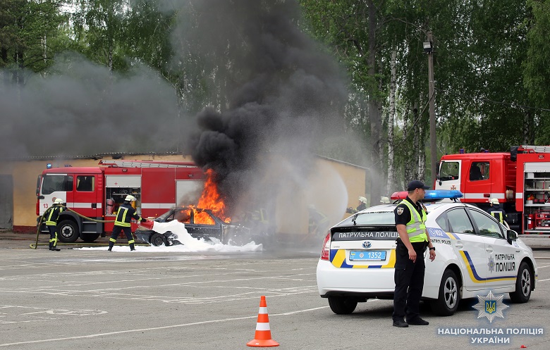 В Киеве прошли масштабные учения с пылающими авто и вертолетом