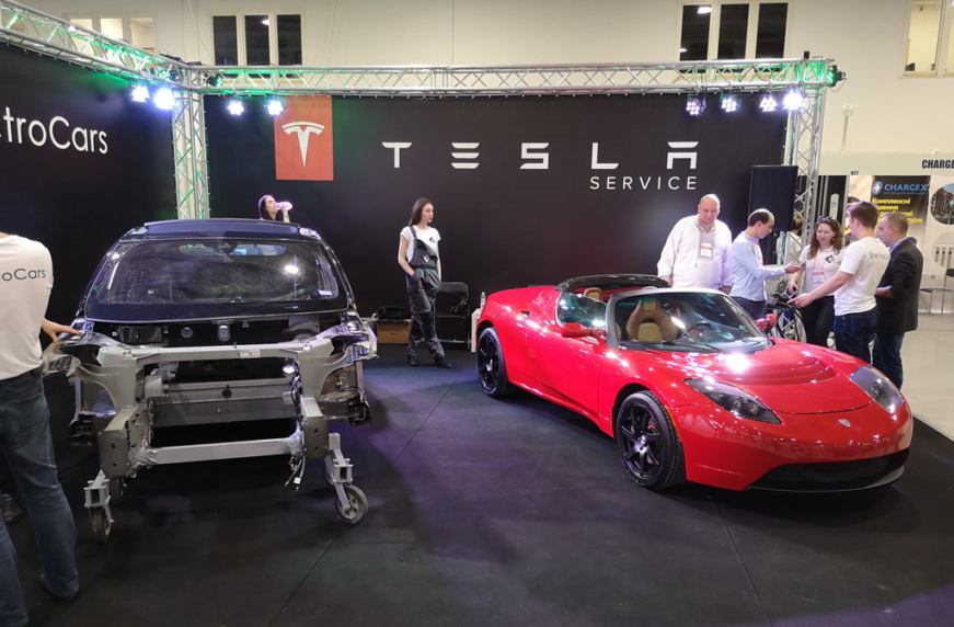 Изюминкой выставки стал стенд компании ElectroCars, где были представлены автомобили Tesla. Например, такой же Tesla Rоadster американский новатор и бизнесмен Илон Маск в прошлом году отправил в космос на орбиту Марса. Tesla Rоadster в Украине презентуют впервые.