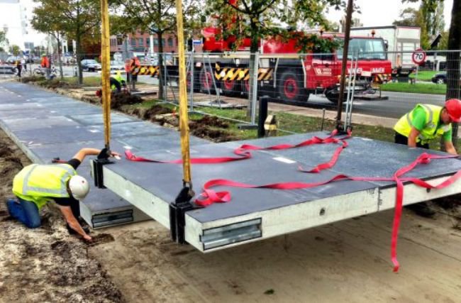 В Нидерландах, в городе Кроменни муниципальные власти принялись за создание велодорожки-солнечной батареи под названием SolaRoad. Первые метры объекта уже построены и народ даже катается прям по батареям — панелям 2,5 на 3,5 м. Благодаря специальному сантиметровому стеклянному покрытию велодорожка удароустойчивая, противостоит дождю, снегу и льду, на ней не скользят колёса.
