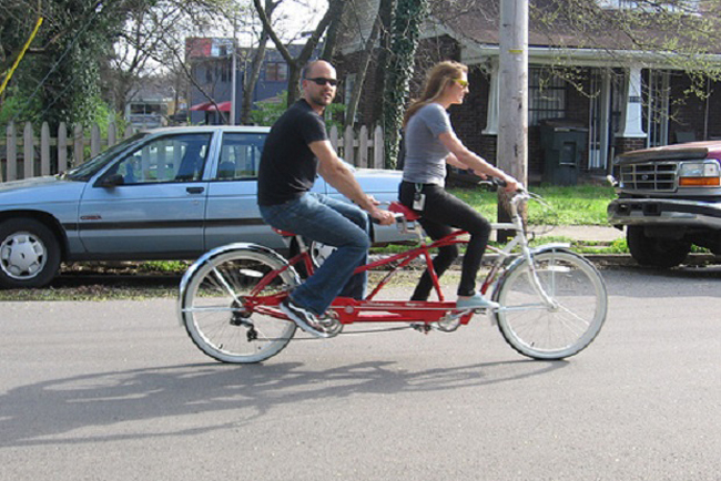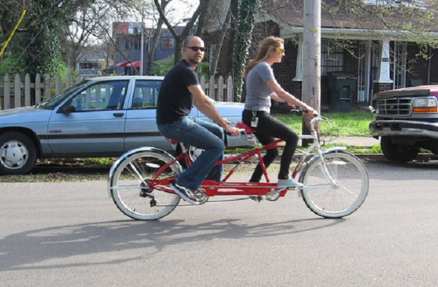 Велосипед-тандем – это двухколесная конструкция с двумя сиденьями, двумя парами педалей и одним рулем. Сидящий спереди держит руль и управляет велосипедом. Заднее сиденье в данном случае предназначено для слабовидящего или слепого человека. Он крутит вторую пару педалей, добавляя велосипеду скорости. Тот, кто сидит спереди, также описывает все интересное, что встречается на пути.