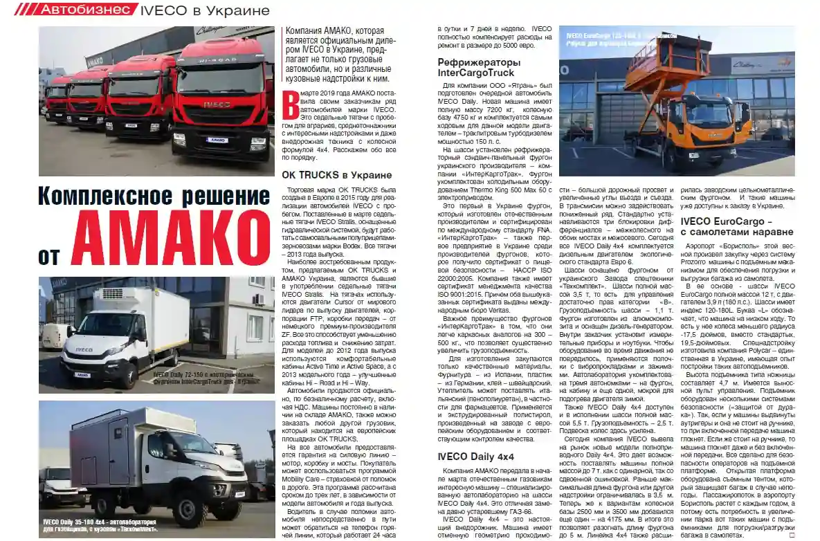 Грузовики IVECO с интересными кузовными надстройками, а также грузовики с пробегом OK Trucks, поставленные недавно клиентам компанией АМАКО.