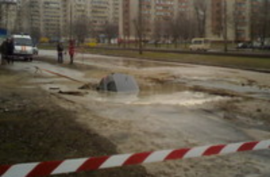 Как стало известно, в Киеве по улице Симиренко в Святошинском районе образовалась глубокая яма, залитая водой. Вчера утром киевляне обнаружили, что в яму попала машина.