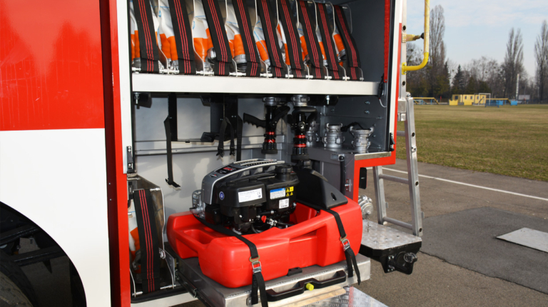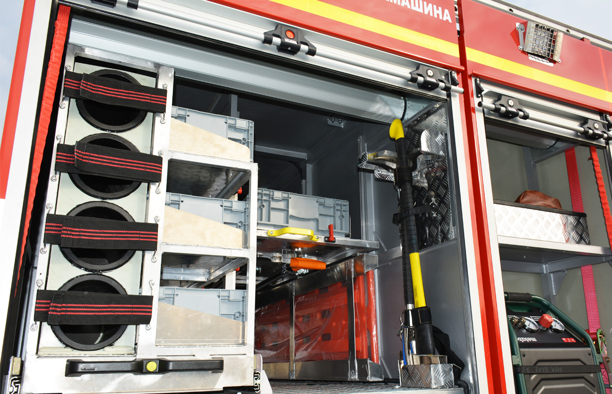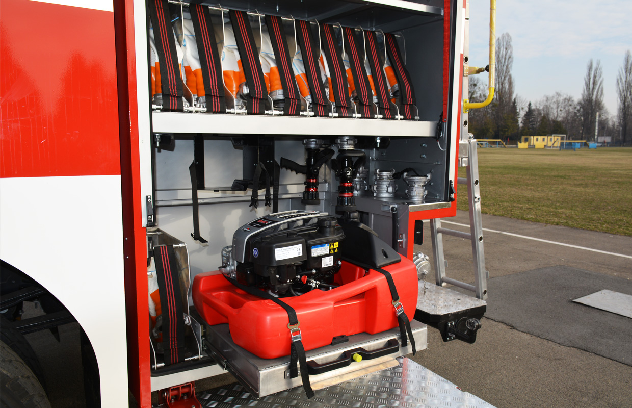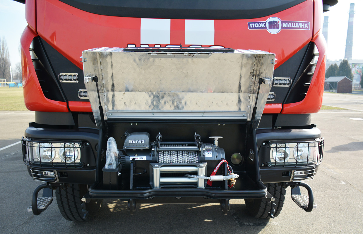 Автоцистерна также оснащается различным аварийно-спасательным оборудованием. Устанавливается также лебедка Runva с тяговым усилием 7,9 т, а также выдвижная осветительная мачта высотой 6 м, с четырьмя прожекторами LED (от 220В и 24В). Кроме того, машина укомплектована GPS-навигацией, встроенным регистратором и камерой заднего вида.