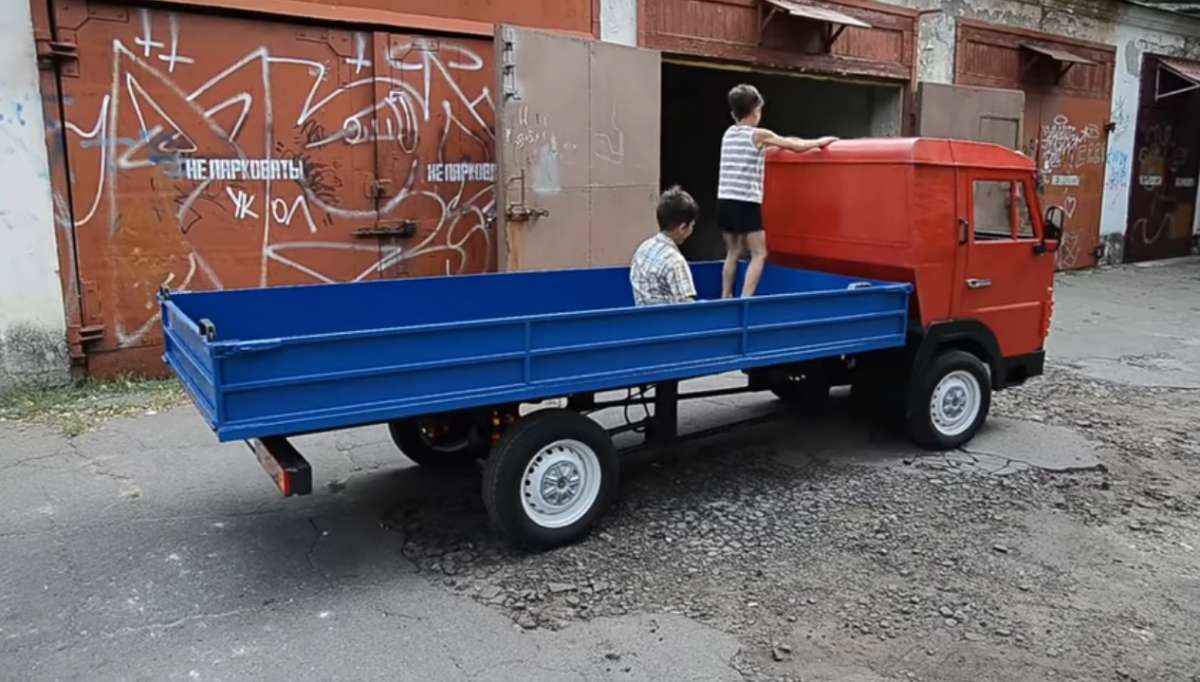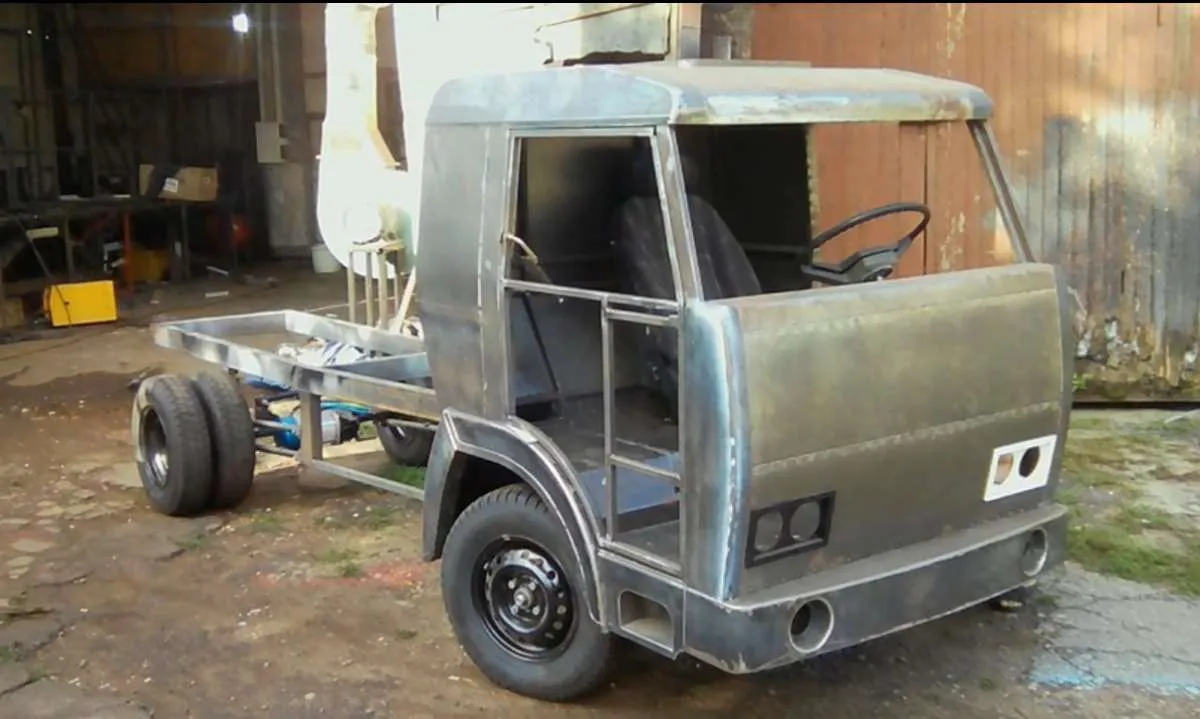 Так самодельный электромобиль еще не оформляли, тем более в Украине. Кулибины из Николаева решили создать мини-грузовик с нулевым вредным выбросом, стилизовав его под КАМАЗ. И это не розыгрыш. Они с нуля построили точную копию кабины камского грузовика, только в уменьшенном масштабе. Каркас кабины, равно как и основная рама выполнены из сварных труб различного диаметра.