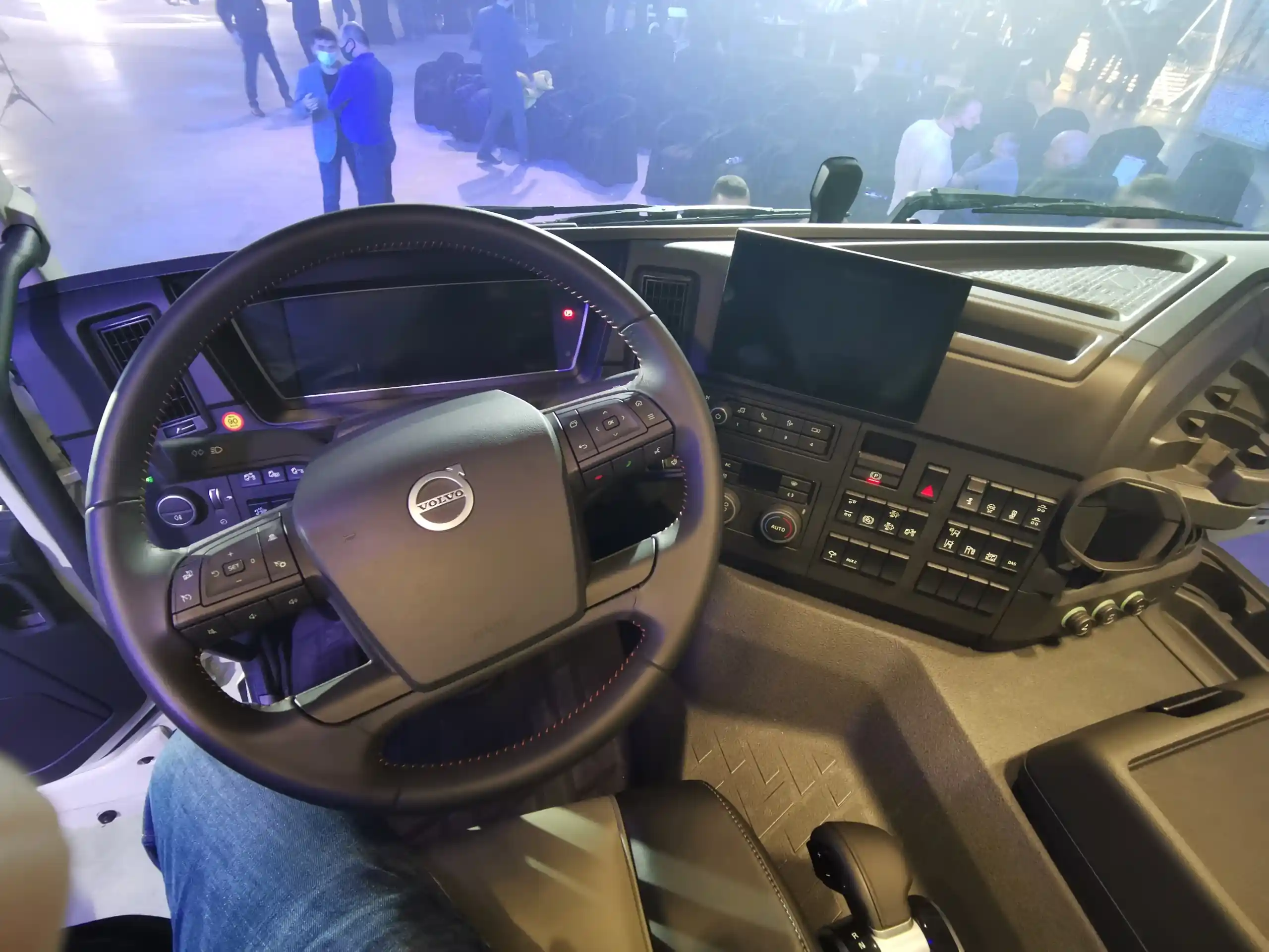 Внедрена полностью новая система распознавания дорожных знаков. Появился еще больший, 9-дюймовый боковой дисплей, на который выводится различная информация: обновленная навигация с картами движения, приложения Android Auto, возможность подключения до 8 камер на один монитор, настройки нагрузки на оси, контроль давления в шинах, настройка cистемы динамического рулевого управления Volvo Dynamic Steering, управление стояночным климат-контролем. Этим всем можно управлять при помощи сенсорного экрана, кнопок на панели или голоса.