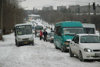 Утром неочищенными оказались не только периферийные пути, но и сам проспект. Поэтому маршрутки двигались со скоростью 10 км в час, для многих же автолюбителей подъемы, например на дамбе, оказались непреодолимым препятствием. В результате на остановках толпы народа, некоторым жителям Коммунаровского района и Песков приходилось преодолевать пешком несколько километров – в снеговые заносы попали и троллейбусы.