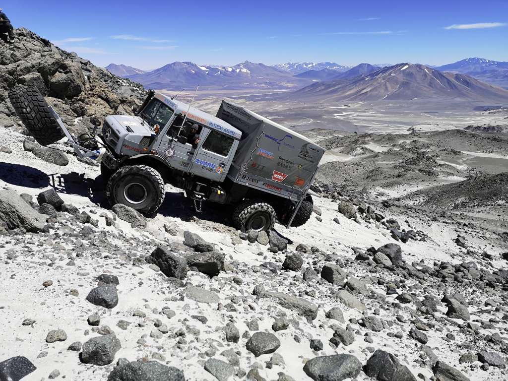 За останні сім десятиліть всюдиходи Mercedes-Benz Unimog зарекомендували себе як надійні транспортні засоби для наукових експедицій у різних кліматичних умовах. І от нове досягнення – група у складі 10 осіб на двох автомобілях Unimog U 5023 заїхала на найвищий у світі (6893 м) діючий вулкан Охос-дель-Саладо, розташований у Чилі.