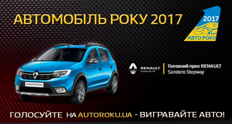 Головним призом Всеукраїнського голосування «Автомобіль року 2017» традиційно буде автомобіль. Цього разу переможець стане володарем новенького Renault Sandero Stepway від компанії «Рено Україна». Щоб отримати виграш, потрібно лише проголосувати на сайті autoroku.ua або в соцмережі vk.com чи в журналі «Автоцентр», заповнивши анкету для голосування і відправивши на зазначену адресу до 05.01.17.