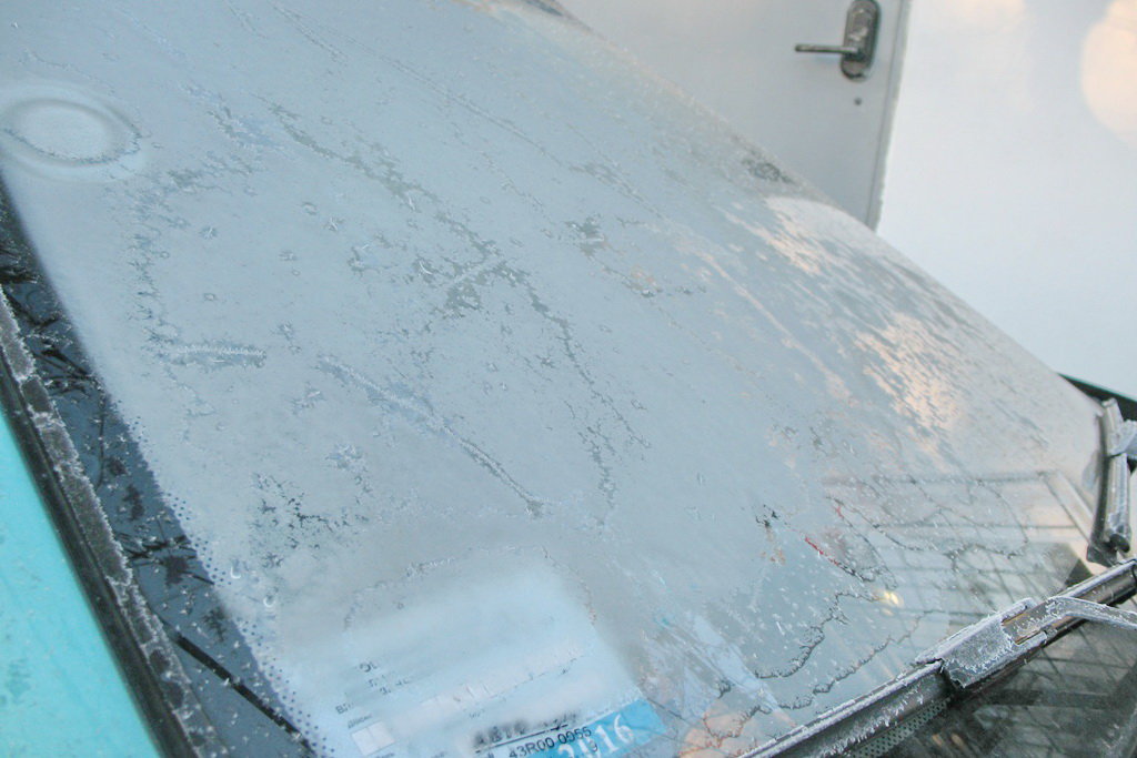 З цією проблемою, мабуть, стикалися абсолютно всі автомобілісти. Цей «бонус» образливіший тоді, коли тонку крижану скоринку доводиться зішкрябувати буквально за півгодини до того, як вона б і сама розтанула – але виїжджати з дому потрібно саме зараз. Спробуйте запам’ятати, яка частина вашого паркування освітлюється ранковим сонцем в першу чергу – і залишайте машину ночувати в цьому секторі: тоді, можливо, вранці машина встигне відтанути сама, перш ніж ви поїдете на ній. Більш надійний спосіб – це з вечора, перед постановкою машини на нічліг, охолодити салон. Це можна зробити, відкривши двері або пустивши холодне повітря з вулиці через систему вентиляції. Скло стане холодним, і на ньому не буде збиратися конденсат, який вночі замерзне і зробить вікна непрозорими.