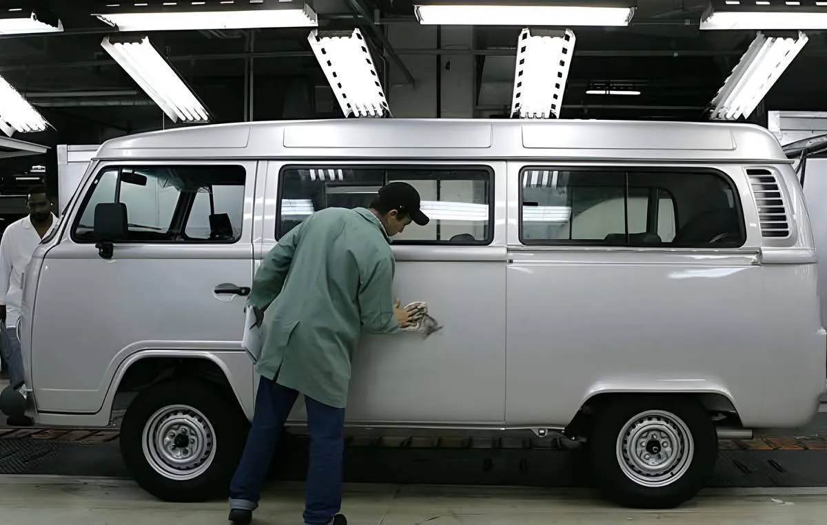 Виробництво тривало у Бразилії ще вісім років, поки у грудні 2013-го з конвеєра не зійшов останній T2. На фото показано виробництво Т2 Kombi Silver Edition, зроблено 13 грудня 2005 року. Тобто лише за десять днів до встановлення останнього агрегату повітряного охолодження.