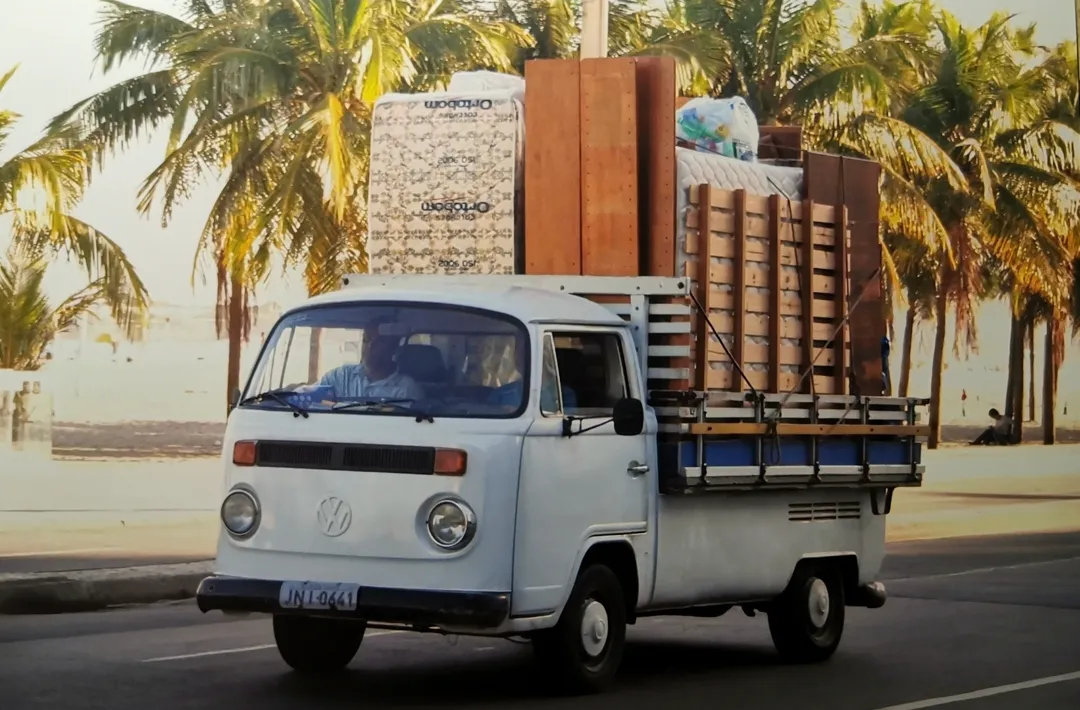 А цей T2, завантажений вище даху, їде набережною найбільшого пляжу в Ріо – Копакабана