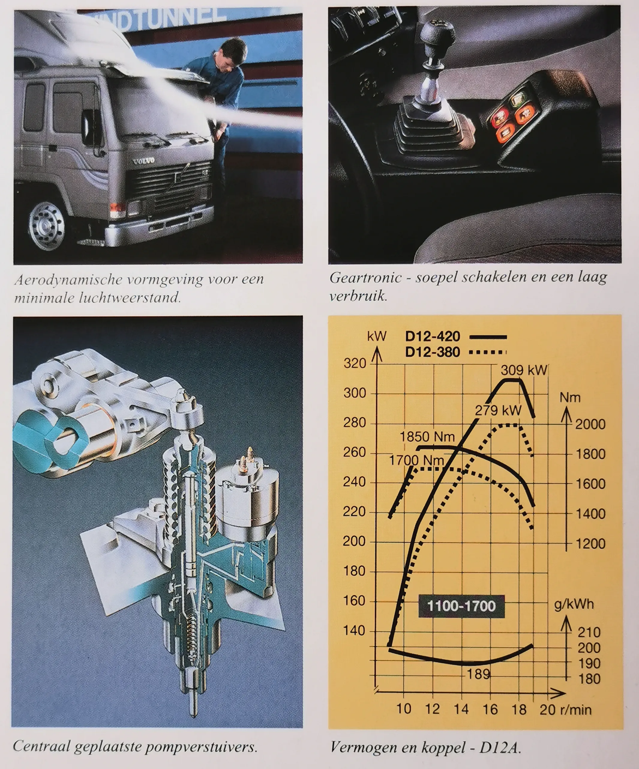 Відмінною особливістю всіх цих машин був новий потужний двигун D12A. Цікаво, що такий самий встановлювався й на важких магістральних тягачах Volvo FH12. Це був 6-циліндровий турбодизель із чотирма клапанами на циліндр та безпосереднім упорскуванням пального за допомогою насос-форсунок.