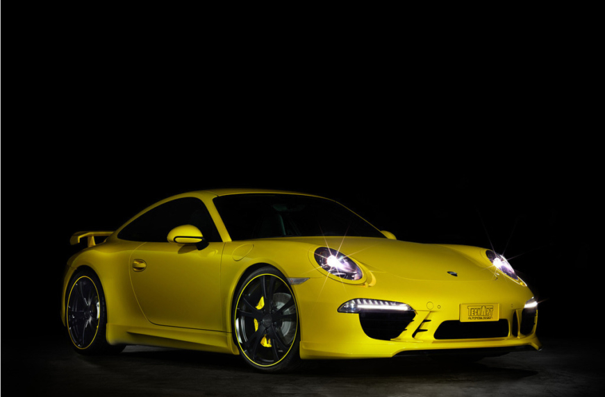 По замыслу ателье, купе Porsche 911 Carrera будет выглядеть куда лучше, если снабдить его двухсоставным передним спойлером со встроенным сплиттером и дополнительными аэродинамическими элементами, интегрированными в воздухозаборные отверстия. Корма купе Porsche 911 Carrera получила традиционный зафиксированный спойлер со встроенным стоп-сигналом, диффузор и накладки на задние крылья.