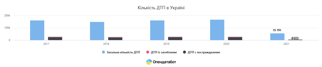 У звітному періоді було зафіксовано 55 791 ДТП, із них 785 інцидентів – із загиблими, і 5988 – з травмованими. Лідером за кількістю аварій, як і раніше, є Київ і Київська область. Також високий рівень аварійності в Одеській, Дніпропетровській та Львівській областях. Найкраще ситуація на дорогах Луганської, Сумської та Кіровоградської областей.