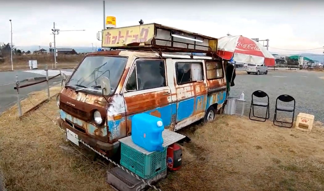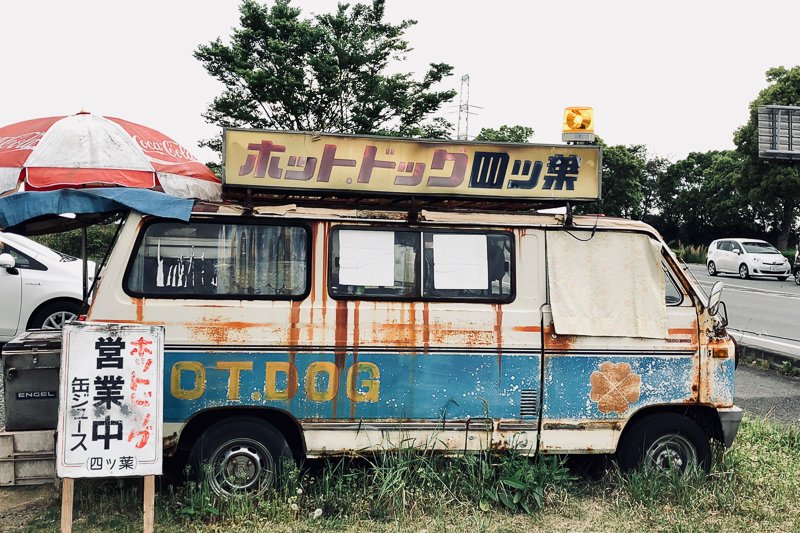 На японском острове Кюсю найден один из старейших мобильных продуктовых магазинов в мире – заросший травой ржавый фургон Nissan с вывеской Hot Dog Yotsuba. Радовать проезжающих рядом японцев и туристов хот-догами магазин на колесах начал в 1976 году. Около 10 лет назад закусочная на колесах появлялась в разных местах в округе города Кумамото.