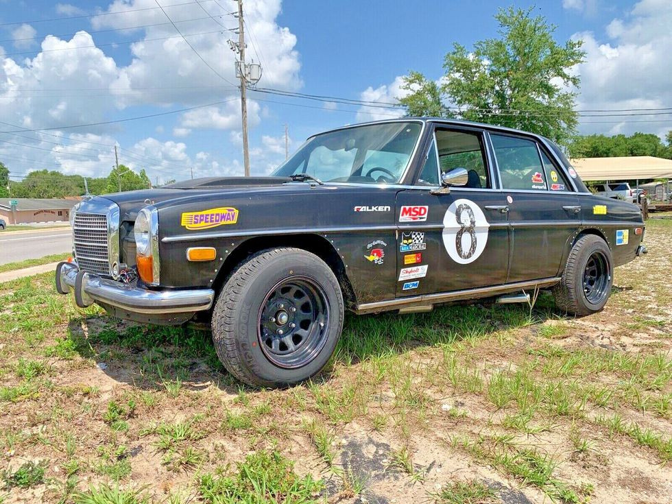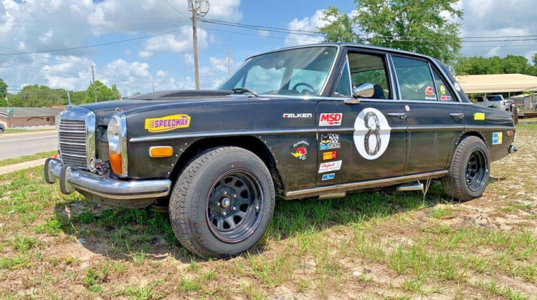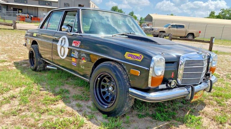 Чи то власнику цього Mercedes-Benz W114 не давала спокою мода на кросовери, чи то він вирішив його створити заради забави. Але, найімовірніше, і перше, і друге. Вирізняють цей седан у потоці передусім великі шини з великим виносом, заради яких довелося навіть підрізати колісні арки. Відповідно, було модернізовано і підвіску. Примітні і вихлопні труби, виведені з бортів седана.