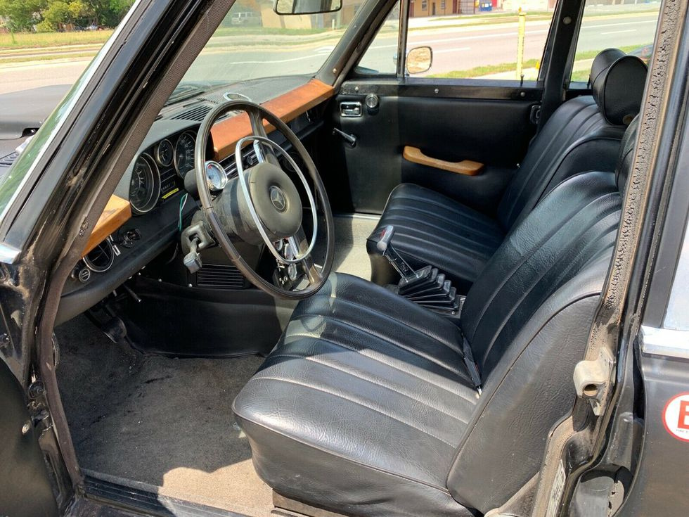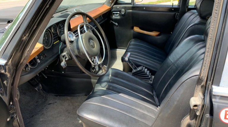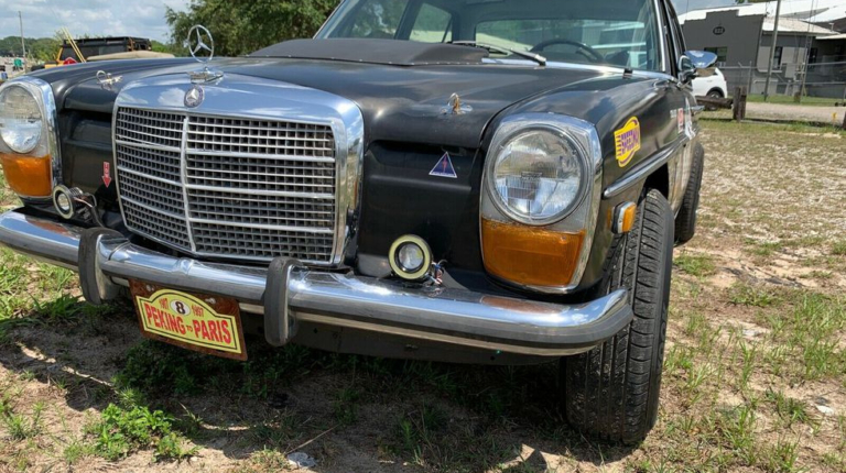 Так що заміна “серця” автомобіля цілком зрозуміла і логічна! От хіба що залишається загадкою, чому з такою виконаною роботою дірки в передніх колісних арках залишилися незавареними? Стиль Mad Max? Чимало на автомобілі і наклейок, зокрема і ралі Пекін-Париж. Але ми сумніваємося, що цей Mercedes брав участь у знаменитому ралі-марафоні для ретро-автомобілів. Найімовірніше, наклейки тут для привернення уваги. Адже цей Mercedes-Benz W114 продавали на eBay зі стартовою ціною 7 888 доларів США.