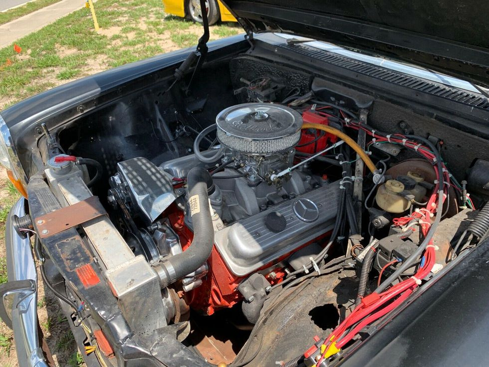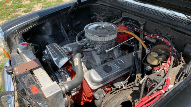 Цікаво, що під капотом встановлено новий двигун – це V8 Chevy small block. Літраж мотора не зазначено, але залежно від модифікації, а випускали цей силовий агрегат без малого півстоліття (!), він міг становити від 4.3 до 6.6 літрів. Але навіть у “найслабших” виконаннях він легко розвивав до 200 к.с. А найпотужніші варіації видавали на гора вже під 500 к.с. Вражає і крутильний момент – від 290 Н/м, тоді як серійно на такі Mercedes-Benz встановлювали двигуни об’ємом від 2 до 3 літрів. І на машинах таких років випуску мали силову віддачу щонайбільше 180 к.с.