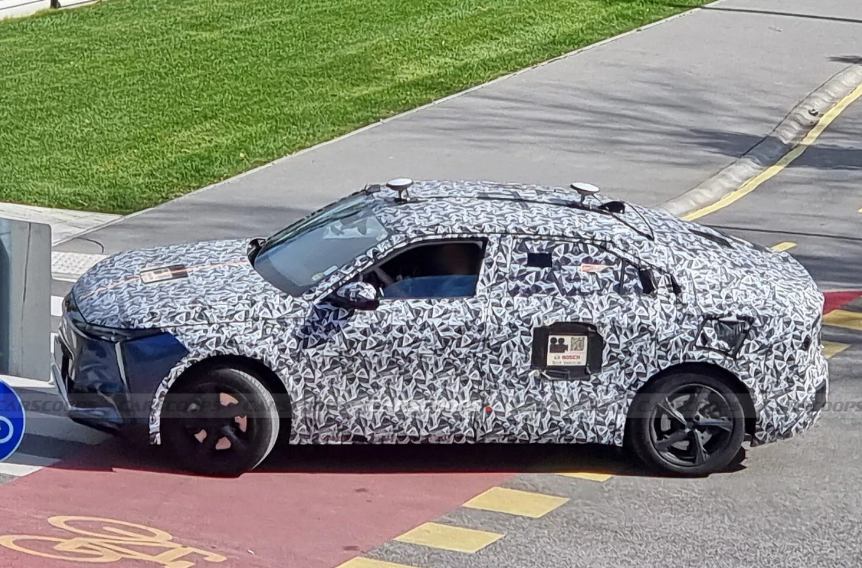 Новинка має агресивний вигляд з тонкими світлодіодними фарами та чітко окресленими ДХО, які інтегровані у передній бампер. Велика решітка радіатора закрита темною глянсовою накладкою і візуально об’єднана з нижнім повітрозабірником. Задні ліхтарі за своєю стилістикою повторюють фари, ручки дверей приховані, а ще видно порт зарядки на задньому крилі.
